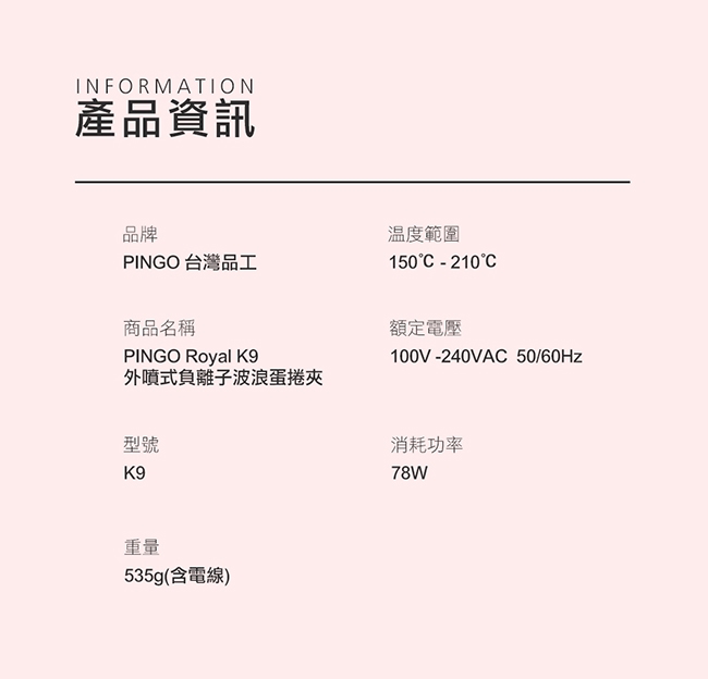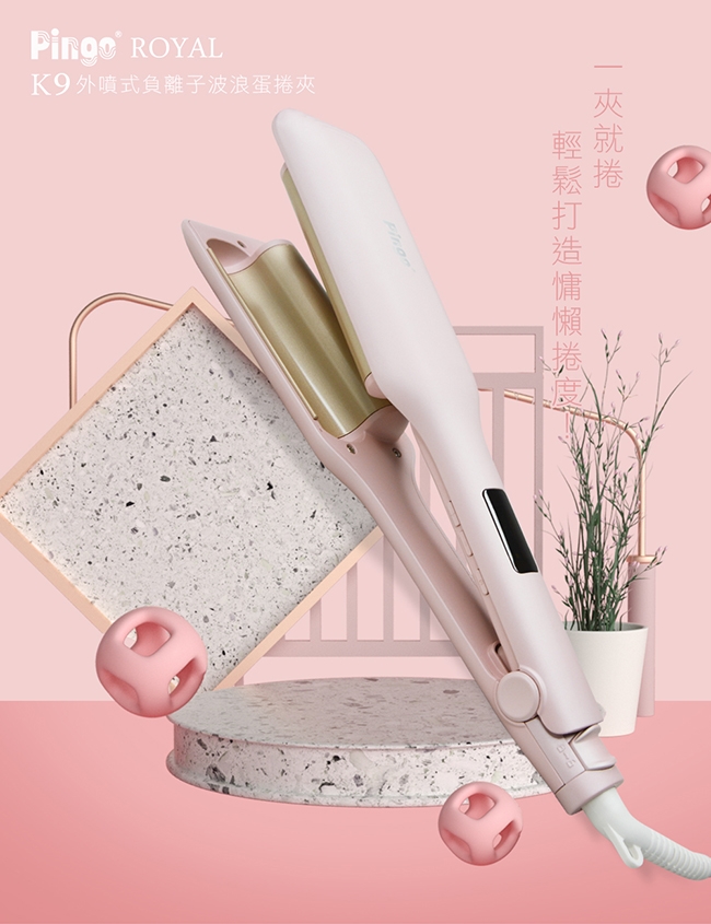 產品名稱:PINGO 台灣品工 Royal K9 外噴式負離子波浪蛋捲夾