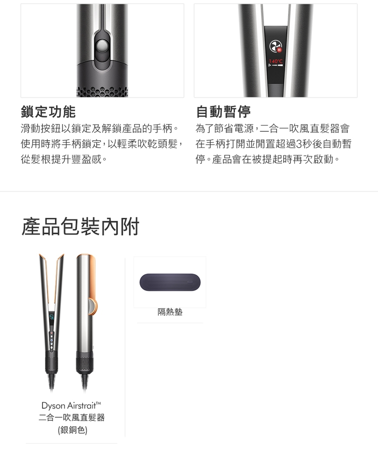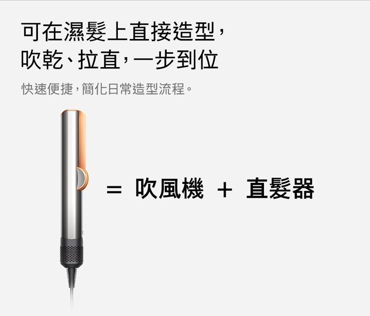 2. 吹乾拉直 一步到位 : 吹風機+直髮器二合一商品,可在濕髮上直接造型,快速簡便,簡化日常造型流程。