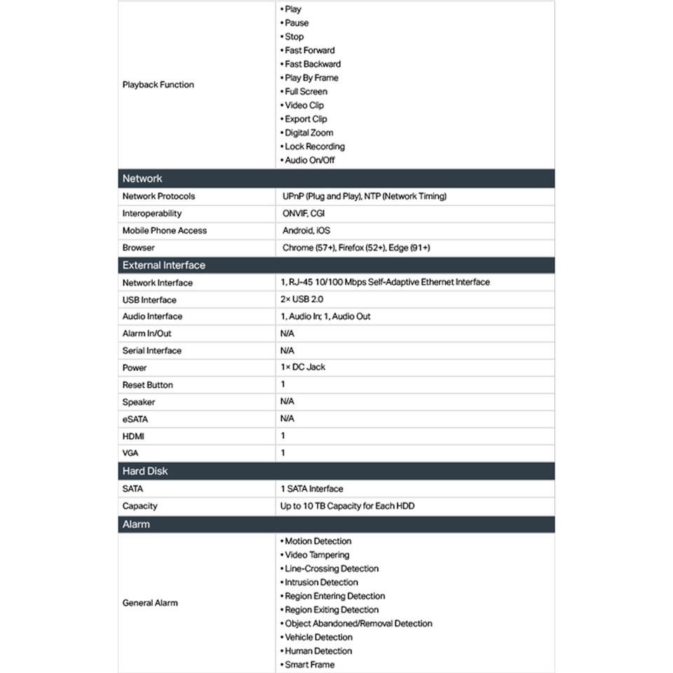 -可容納1個HDD(最大10 TB): 將 10 TB (524天影片) 儲存至 SATA 硬碟,確保您的資料安全的儲存。