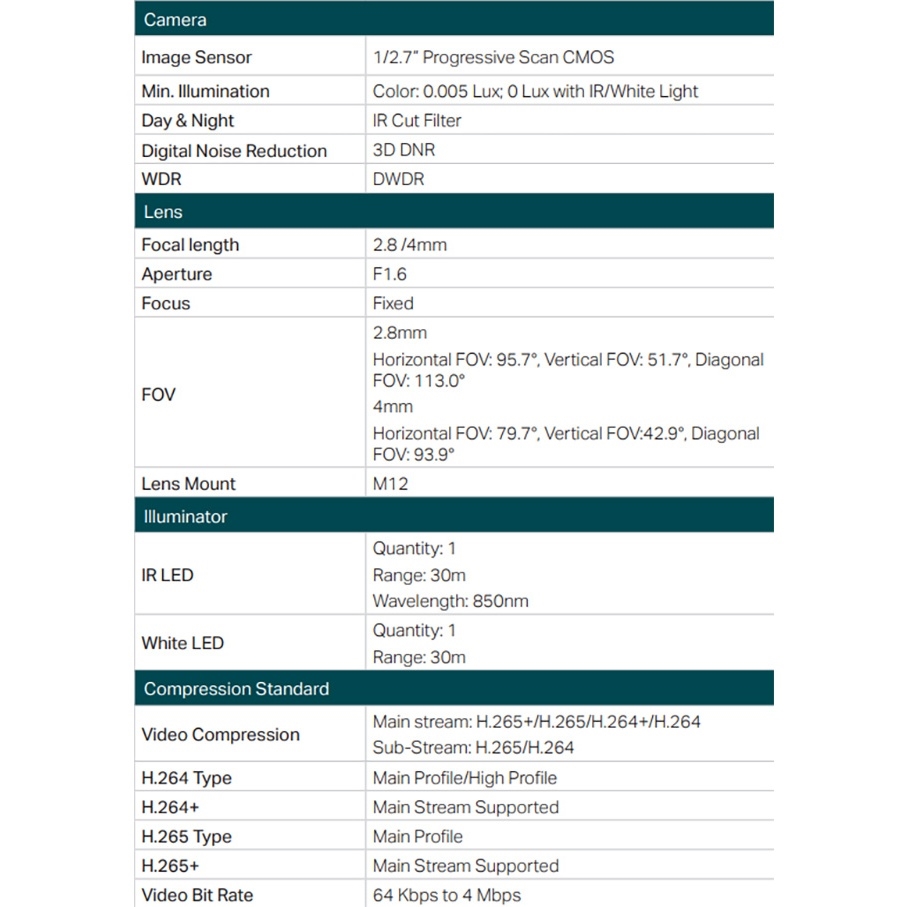 -智慧影像強化:VIGI 的專業影像處理技術大幅提升您對監控品質的需求,包括智慧紅外線(Smart IR)、寬動態範圍(WDR)、3D雜訊抑制(3D DNR)及夜視功能。