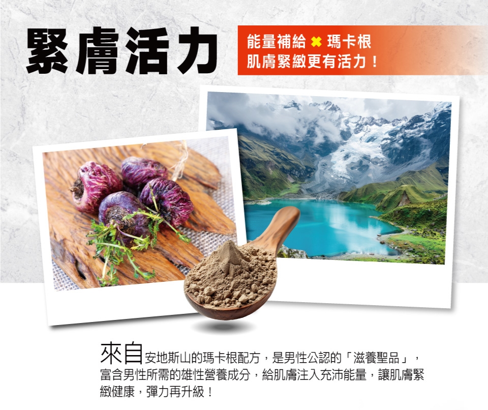 ● 「緊」安地斯山瑪卡根:彈力緊膚調理