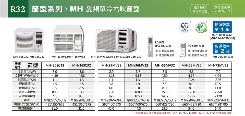 冷媒規格 : R32
