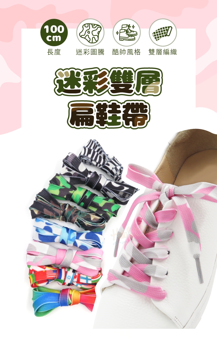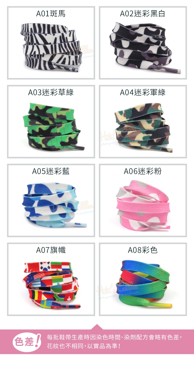 斑馬紋鞋帶 迷彩扁鞋帶 小白鞋鞋帶