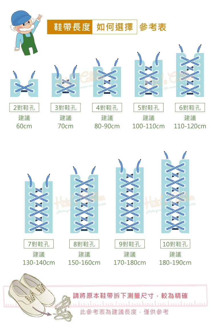 此為建議長度,可量原本鞋帶長度較精確