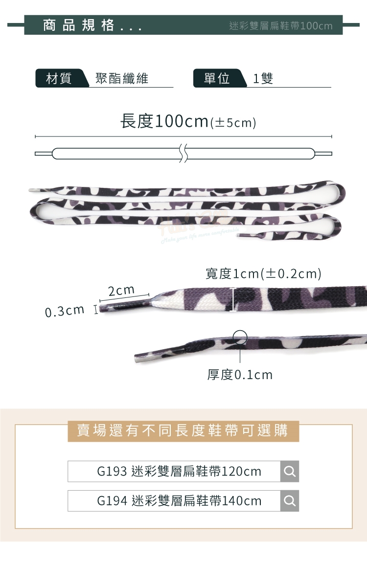 G193 迷彩雙層扁鞋帶120cm
