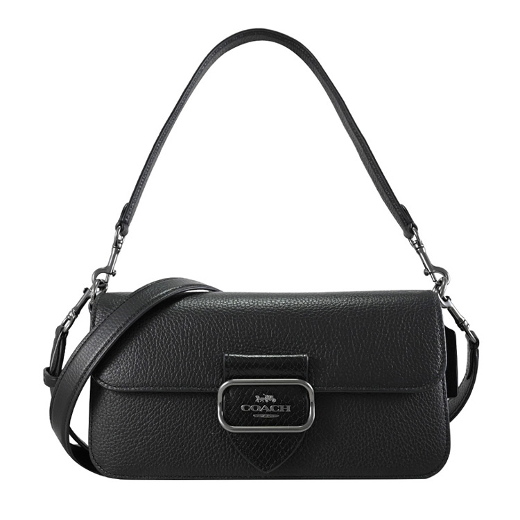 COACH 專櫃商品,與專櫃同步,新版斜背包系列,採用經典荔枝皮革拼接鱷魚壓紋皮革搭配馬車LOGO設計,翻蓋釦式開口(內襯絨布)/內有1拉鍊袋+貼袋、包身後1貼袋供收納,附1質感皮革LOGO吊飾,內可放長夾、手機、摺疊傘等隨身物品,可手提、斜背或側背,是款輕鬆出門的包款,無論外出逛街或出遊皆實用。