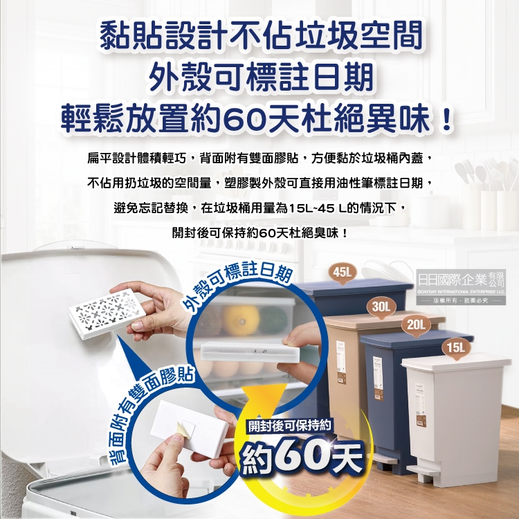 (11)根據使用狀況(15L~45L垃圾桶量可放置約60天),如香味變淡可做更換。