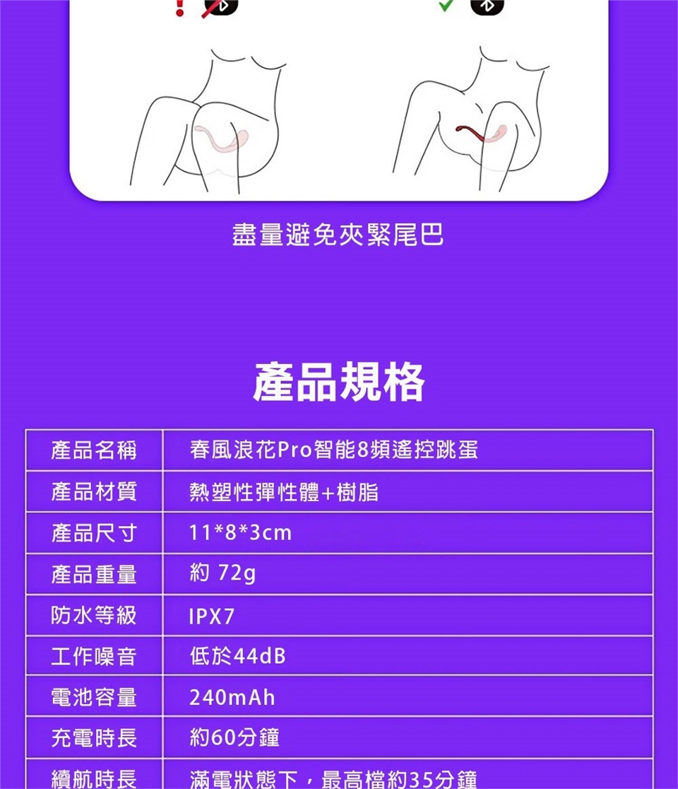 使用說明:開關鍵:長按2秒,開/關機;短按,切換頻率;快按2下,暫停/恢復震動。