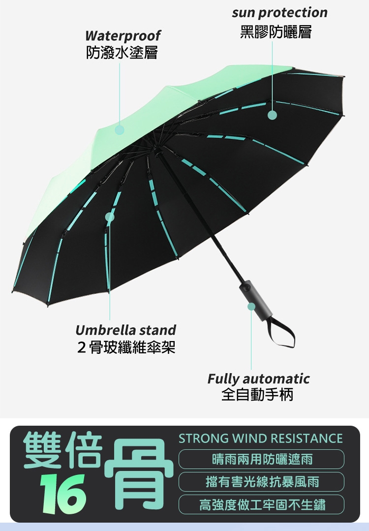 商品名稱:質感抗風16骨摺疊傘自動傘-B TDN