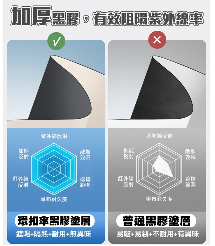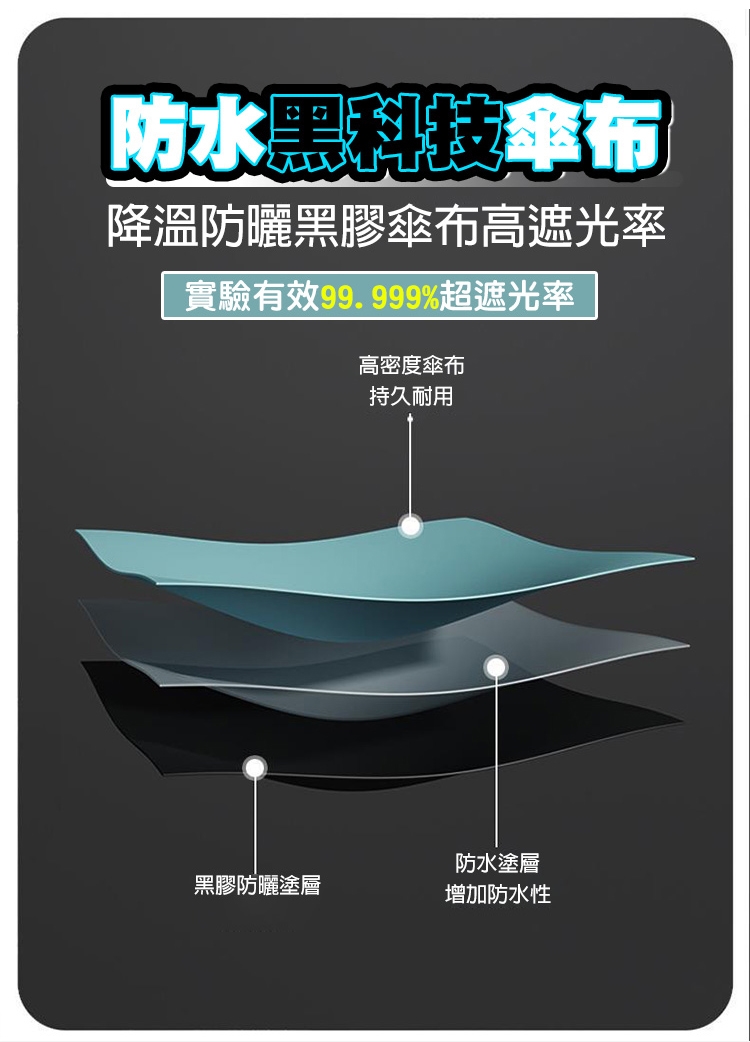 材質:傘布-黑膠、傘骨-玻璃纖維