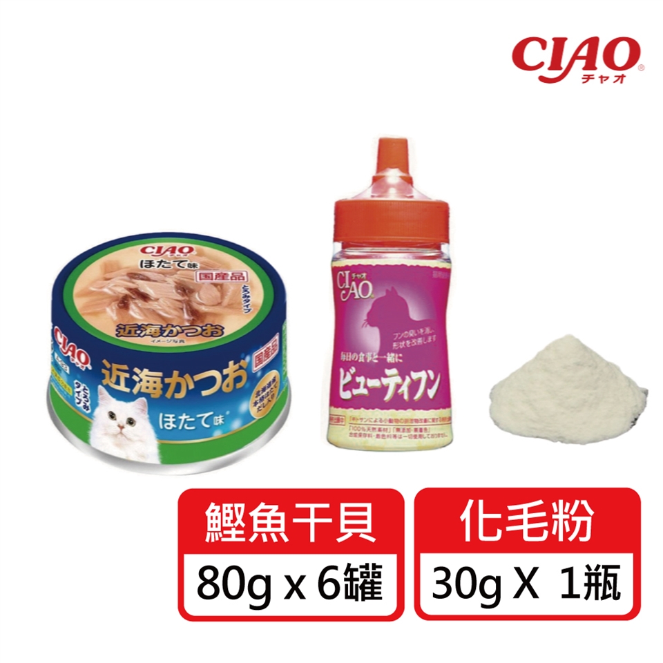 3.近海罐-鰹魚干貝 80g x 6罐+化毛粉30g x 1瓶