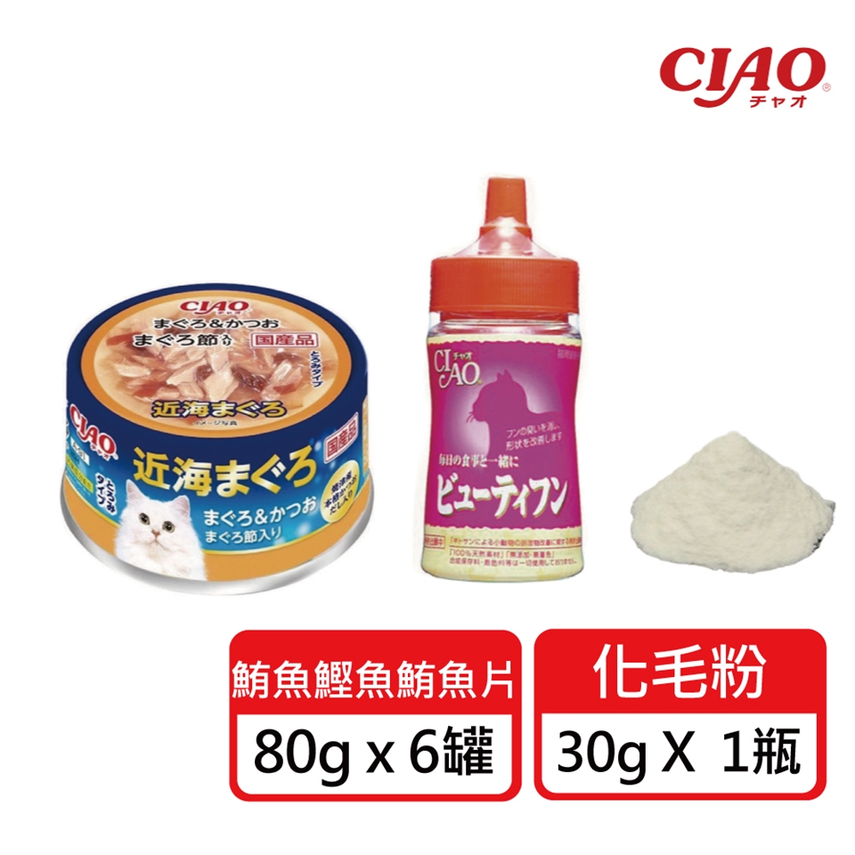2.近海罐-鮪魚鰹魚鮪魚片 80g x 6罐+化毛粉30g x 1瓶