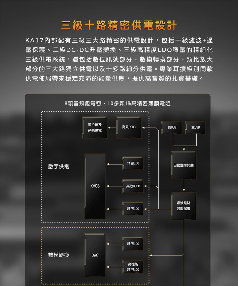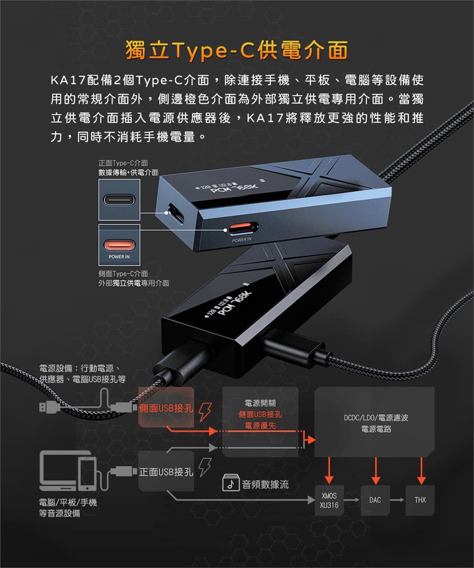 1.本產品內容物包含:KA17*1、專用皮套*1、雙Type-C短數據線*1、Type-A轉Type-C轉接頭、USB防塵塞*2,圖中手機、電腦、擴大機...等僅為示意圖,無包含於產品內。