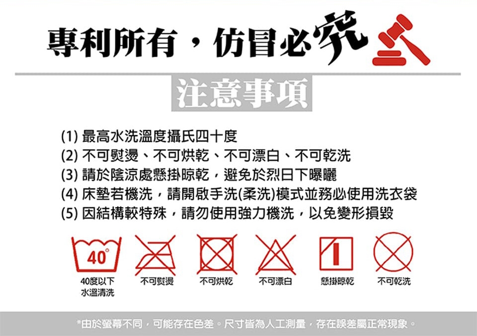2.不可烘乾、不可熨燙、不可漂白、不可乾洗