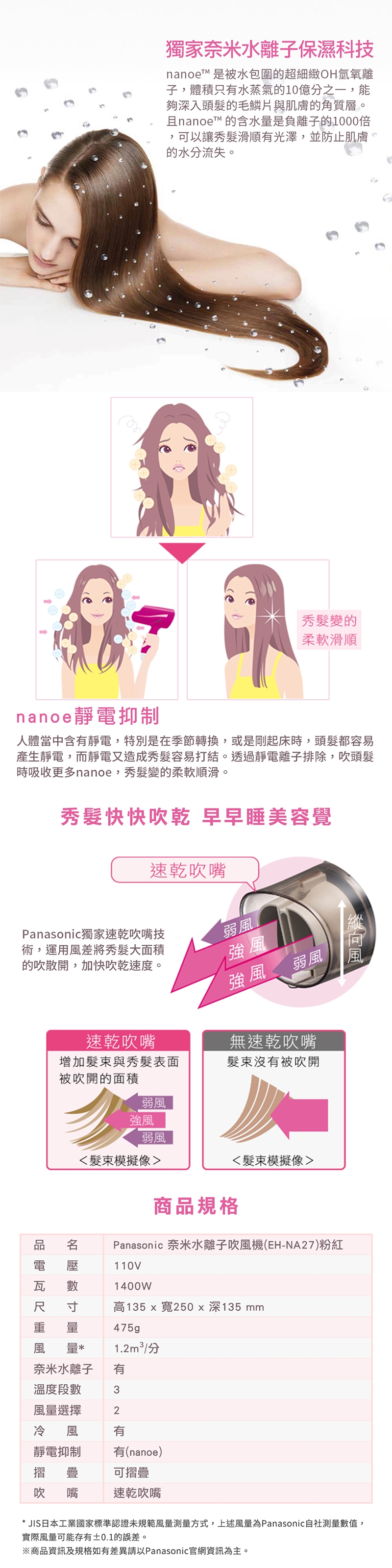 ◆奈米水離子nanoe含水量是負離子的1000倍,可以讓秀髮滑順有光澤,並防止肌膚水分流失。