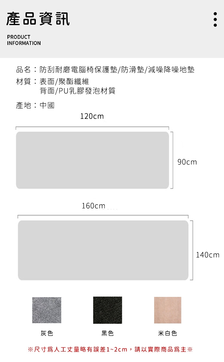 品名:防刮耐磨電腦椅保護墊/地板保護墊/防滑墊/減噪降噪地墊90*120cm