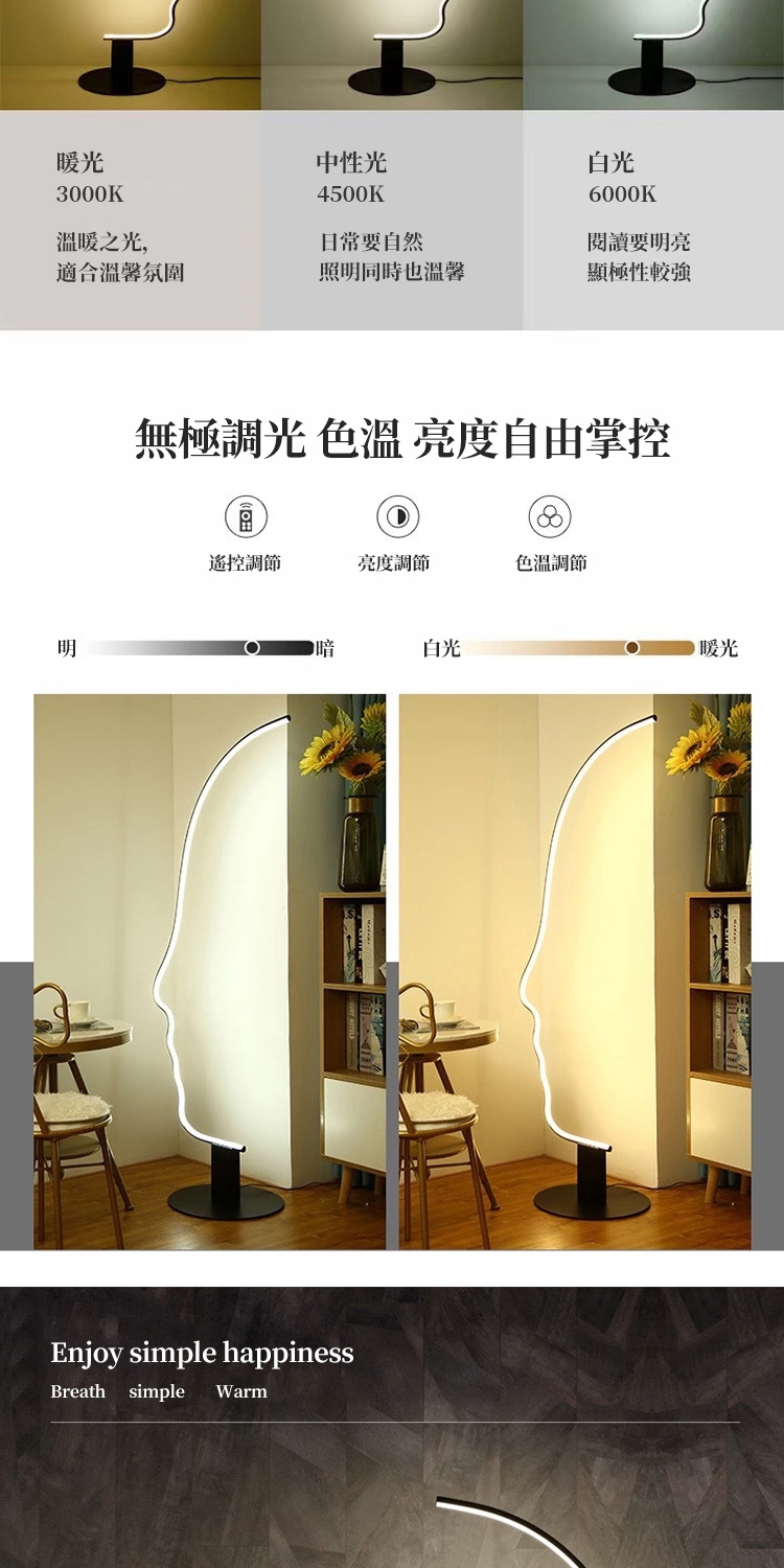 功能:無極調光(白光、中性光、暖光)+調節亮度
