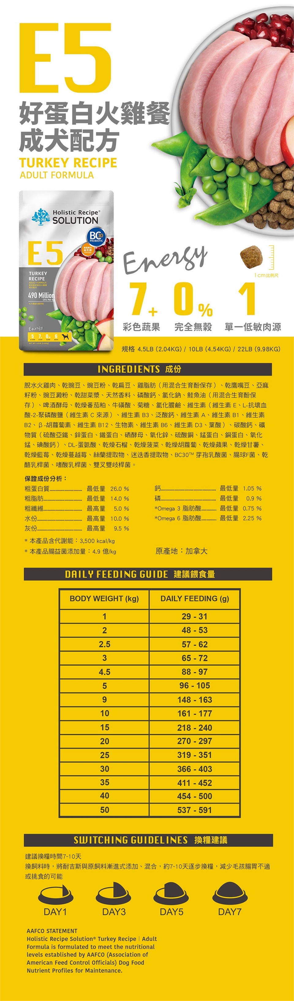1.首次餵食本產品建議以七天為轉換期,原使用產品與本產品混合餵食,循序漸進至轉換完成。