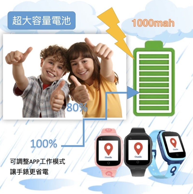 Osmile GPSKD1000 個人衛星定位器為協尋輔具,兒童安全最主要還是需要家人負責與關心。另外 Osmile GPSKD1000 兒童定位手錶為充電使用裝置及透過4G 訊號通訊,使用者忘記充電或電信公司4G 訊號無法涵蓋的範圍,都有可能造成手錶無法發揮求救通話與定位的功能,以上因素為 Osmile 公司無法掌控的風險與因素。因此Osmile公司不負責任何穿戴Osmile GPSKD1000兒童走失或安全的相關法律責任。