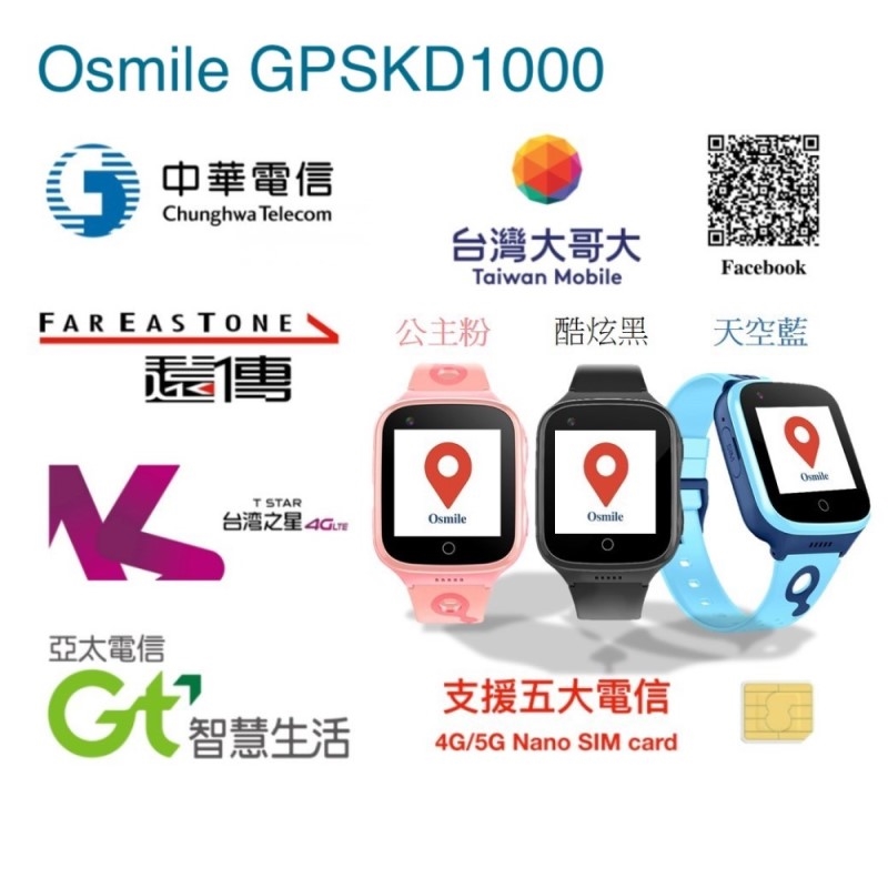 電信公司:兒童智慧手錶支援中華電信、台灣大哥大、遠傳、台灣之星 4G/5G Nano SIM Card