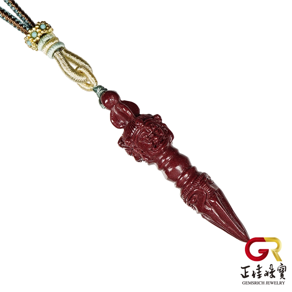 紫金硃砂 避邪金剛杵 金剛杵硃砂吊墜|可調式棉繩