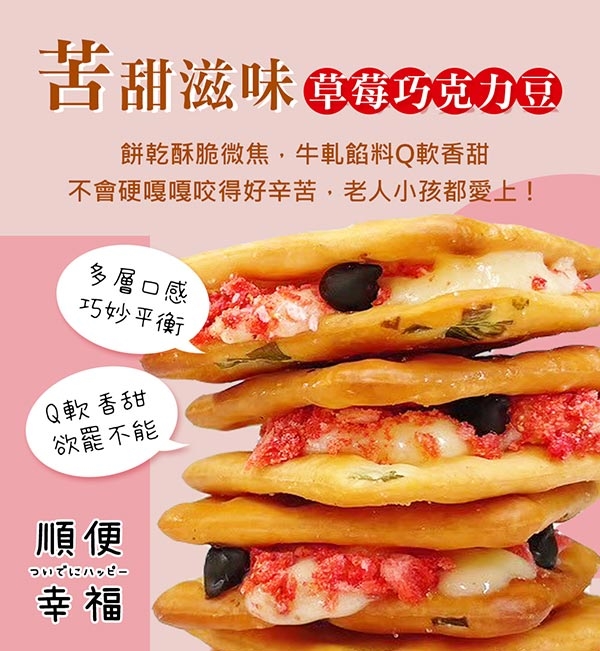 酥脆蔥花餅乾遇上草莓果乾及巧克力豆牛軋糖,