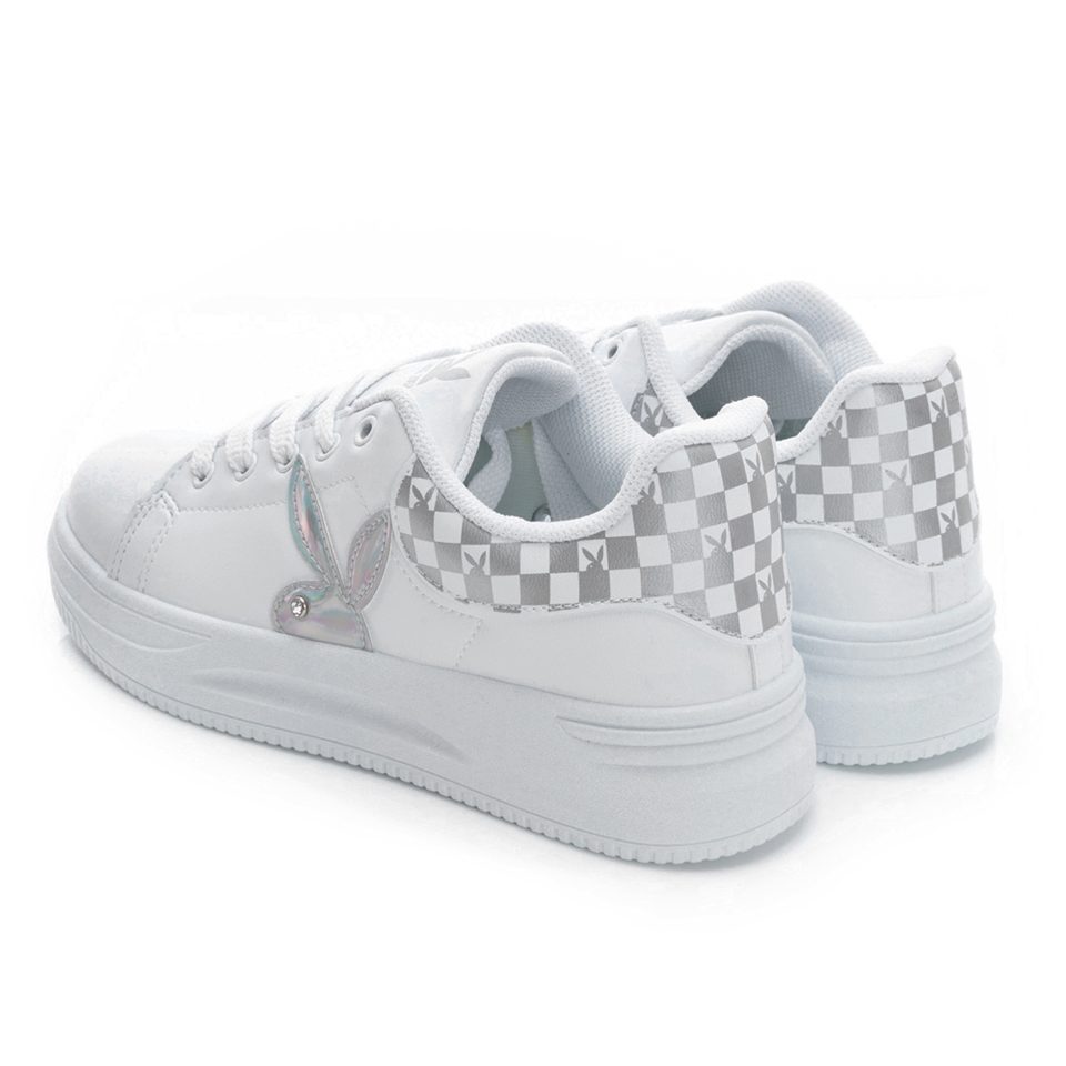 PLAYBOY 街頭漫步賽車格紋兔兔小白鞋-白銀