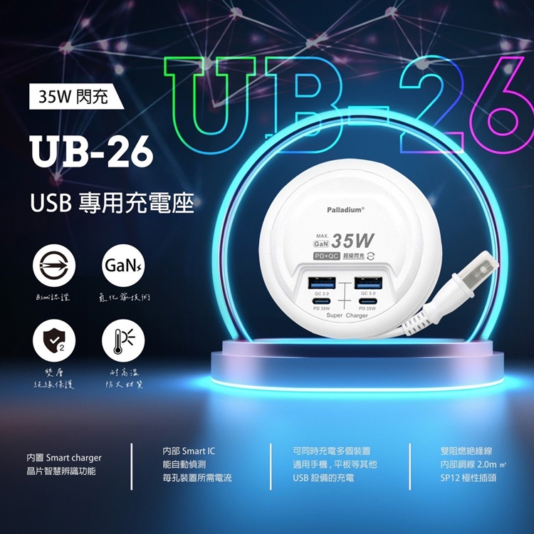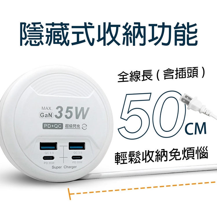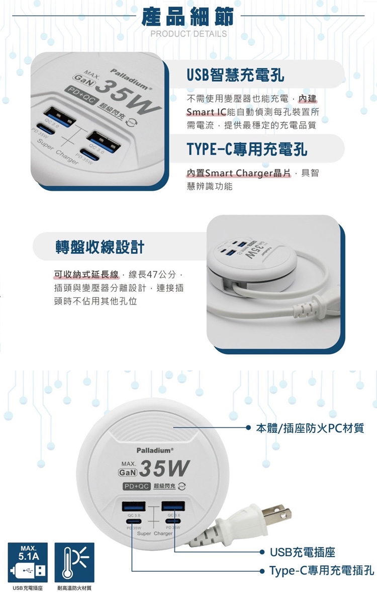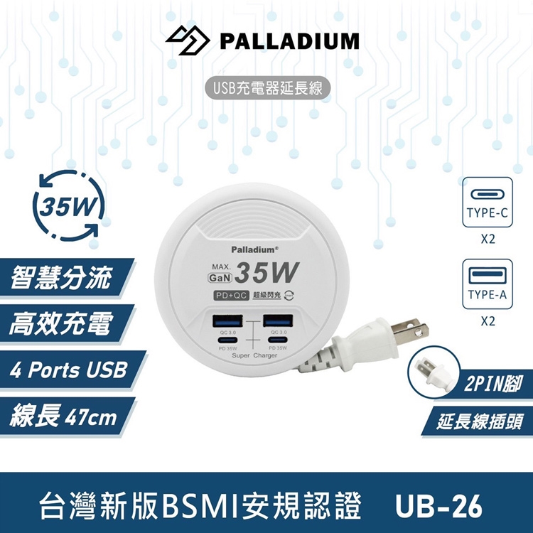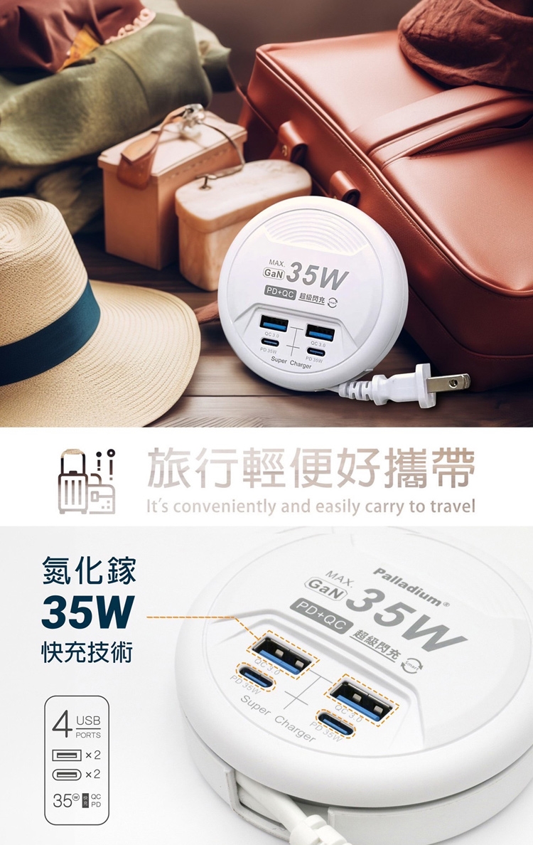 Palladium 35W閃充 PD+QC3.0 4Port 35W USB 氮化鎵 超級閃充電源供應器