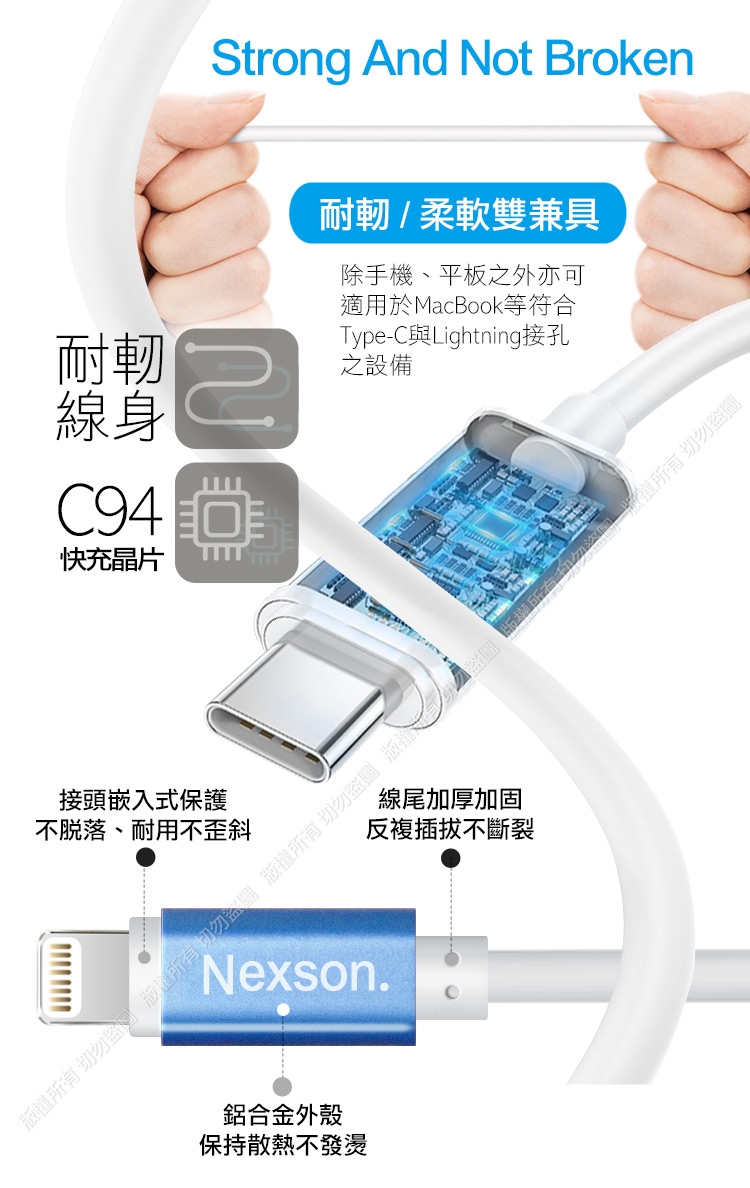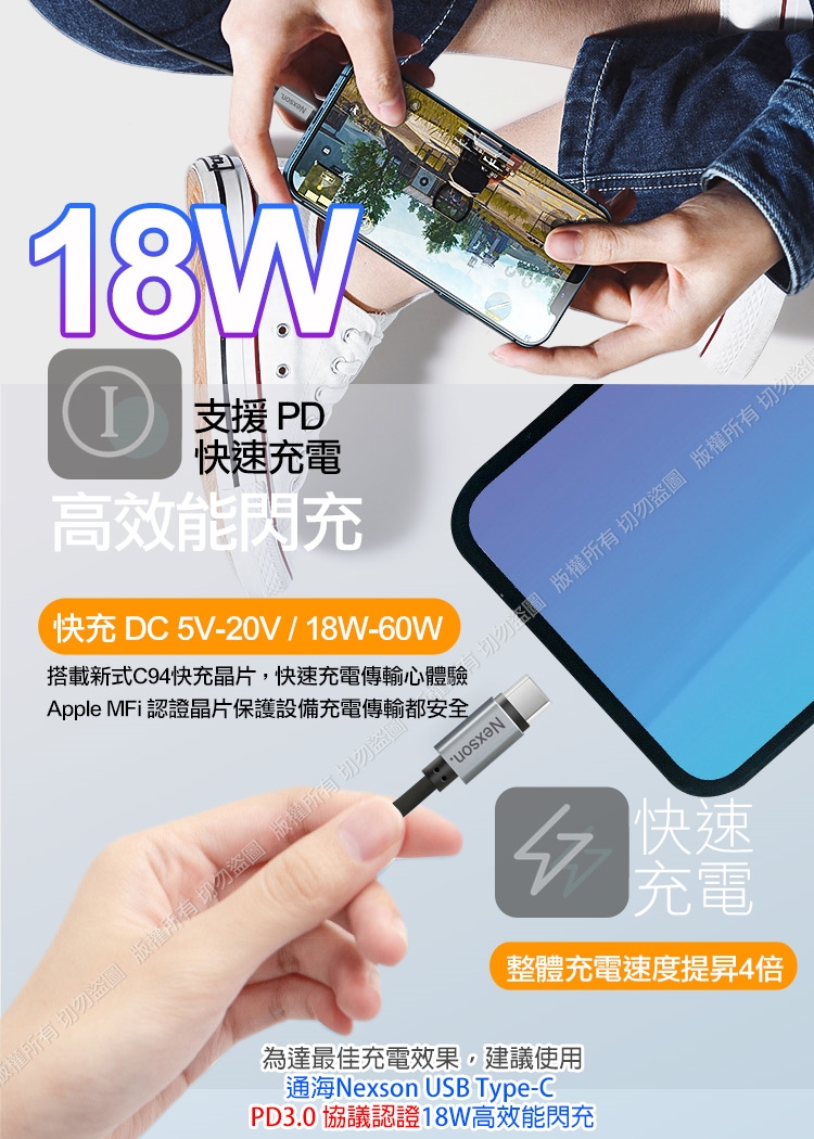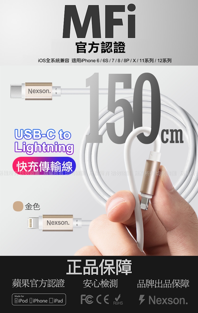 NEXSON通海 for Apple MFI蘋果認證 C to Lightning PD閃充線-150cm