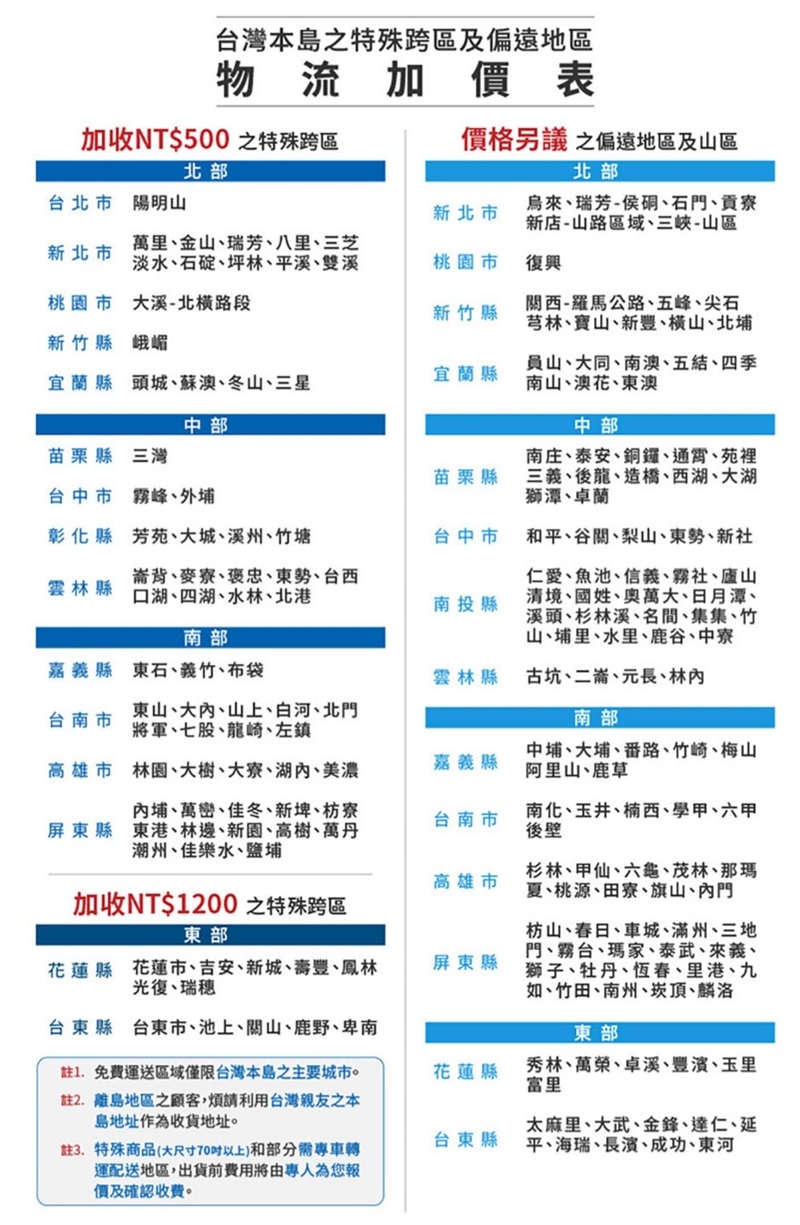 配送地區如有跨區費用 需自行支付運費