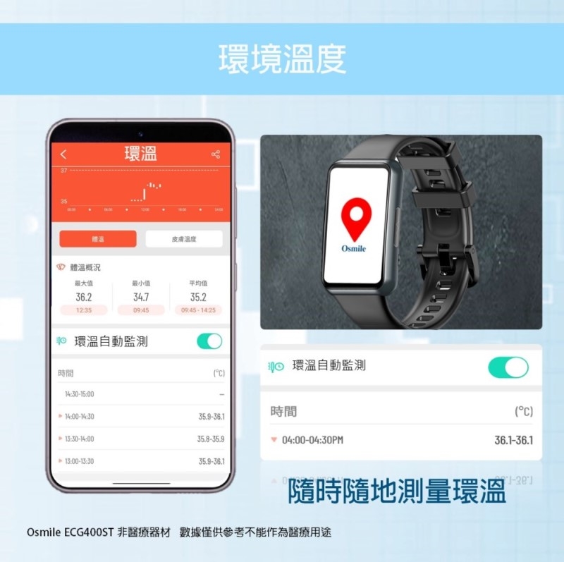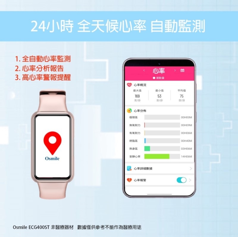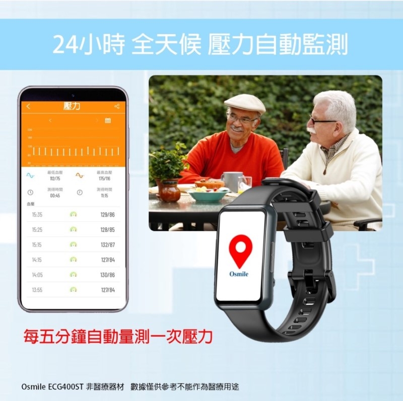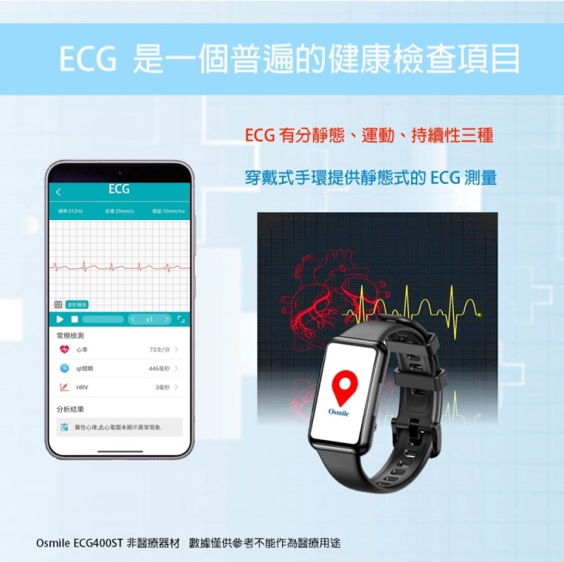 Osmile ECG400ST 並非醫療裝置,並非用於診斷疾病狀況。以上健康相關數據測量結果僅供參考,請勿根據 Osmile ECG400ST 的測量結果調整藥物。請按醫師的規定服藥,只有醫生才有資格診斷及治療疾病。所有數據僅供參考,提醒使用者平時應多加運動並注意身體健康,不應做為醫療診斷之用途。此產品並非醫療器材。