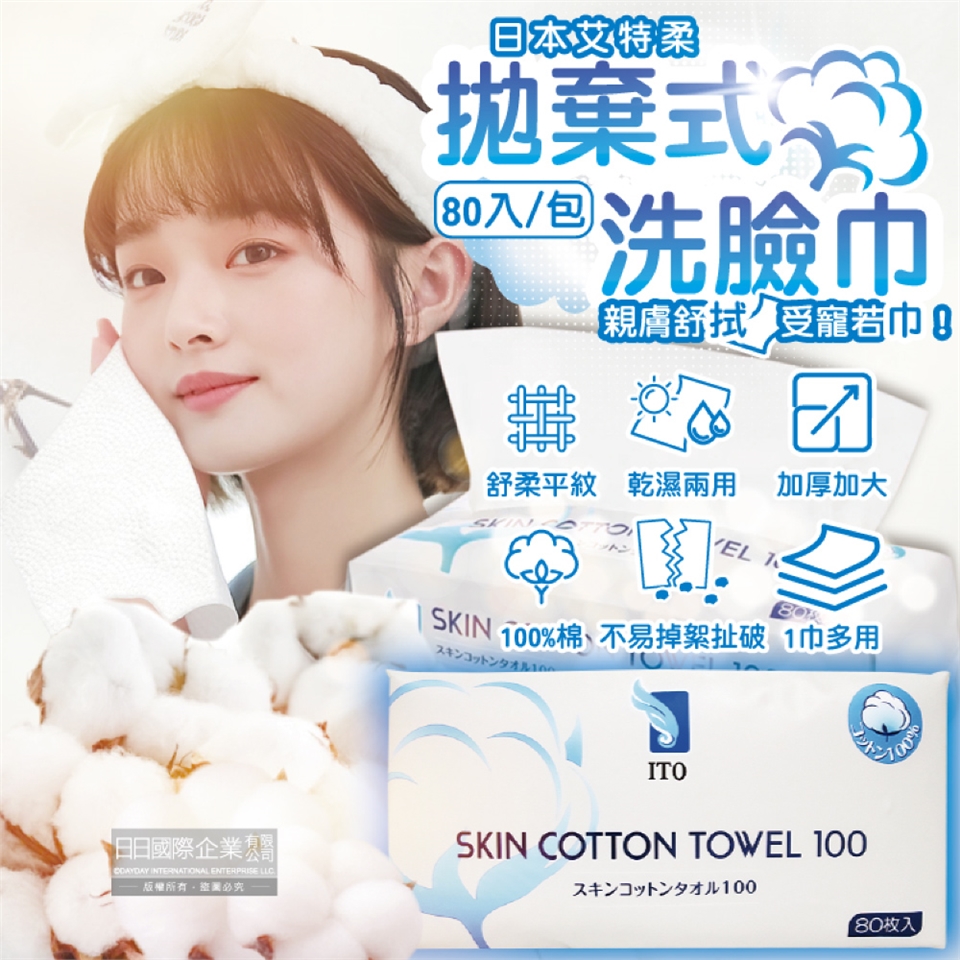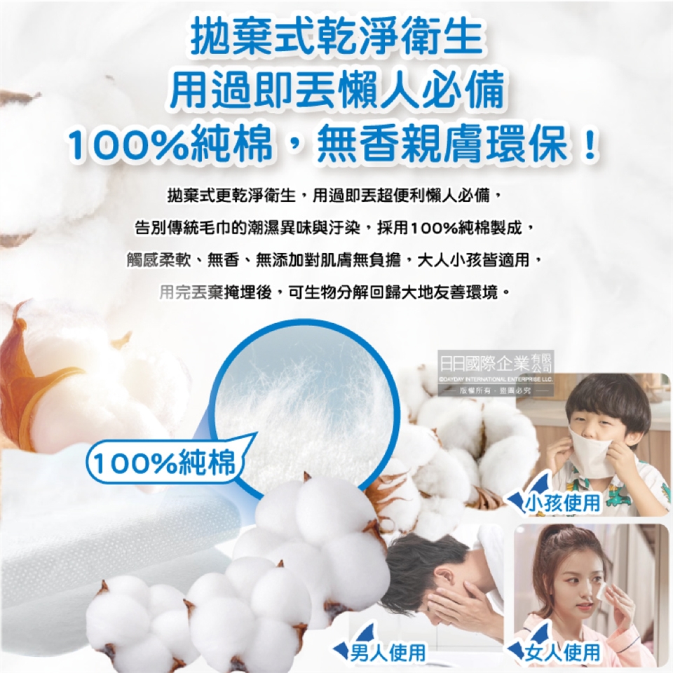 ●品名:純棉乾濕兩用平紋潔面淨膚拋棄式洗臉巾80入/包