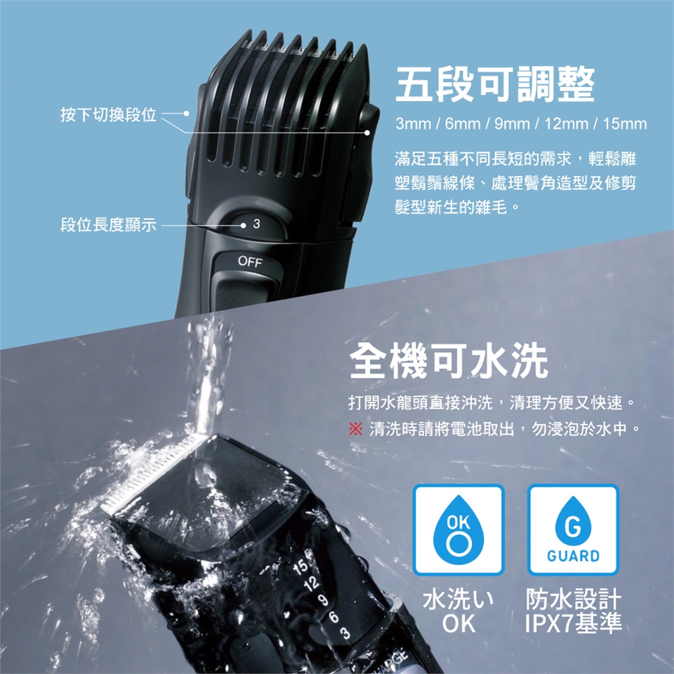 能完全自由的選擇長度及造型,隨心所欲的創造獨樹一格與眾不同的造型。刀刃採用不鏽鋼刀刃,超強馬達堅固耐用,握把符合人體工學,