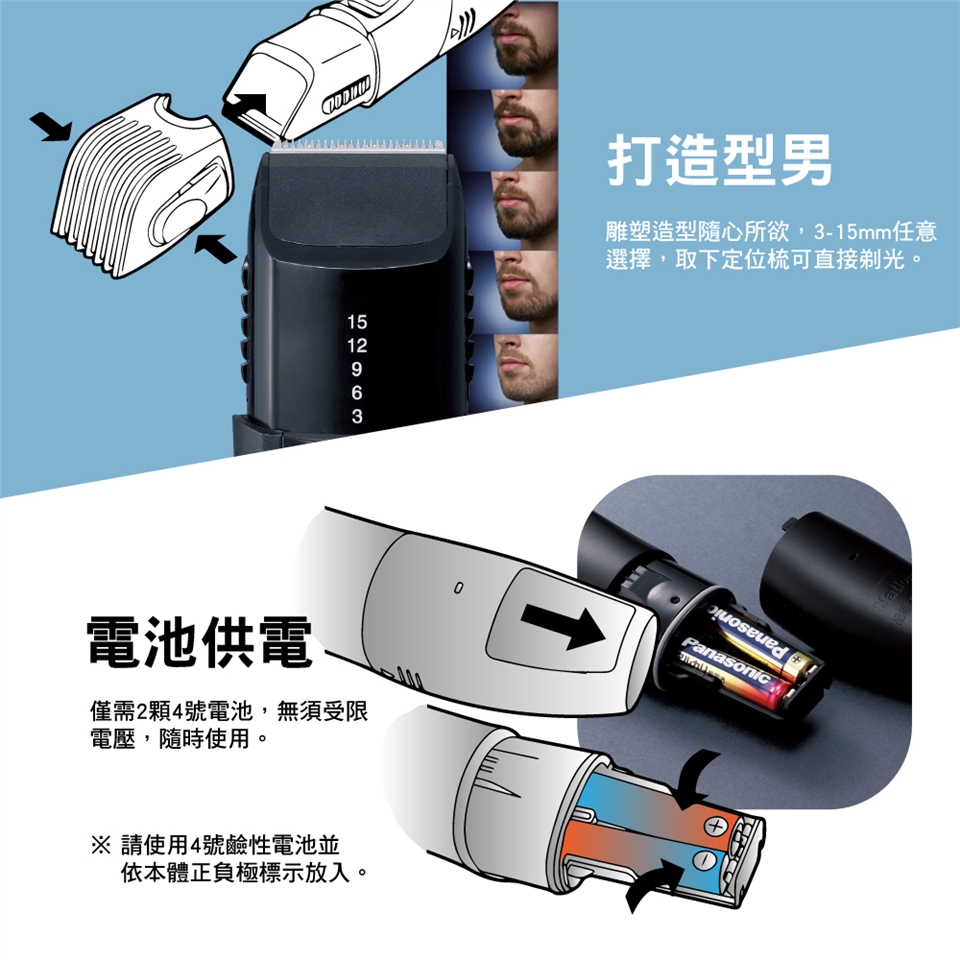 每次看日本街頭流行街頭雜誌都覺得他們的鬍子留的超有型嗎?日本松下這隻附有長短兩種接頭設計的修鬍修鬢角器讓你在理髮、修鬍、修鬢角時,