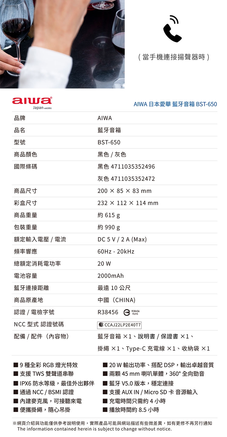 ◎ 播放時間:4-13小時(取決於不同的音量/燈光)