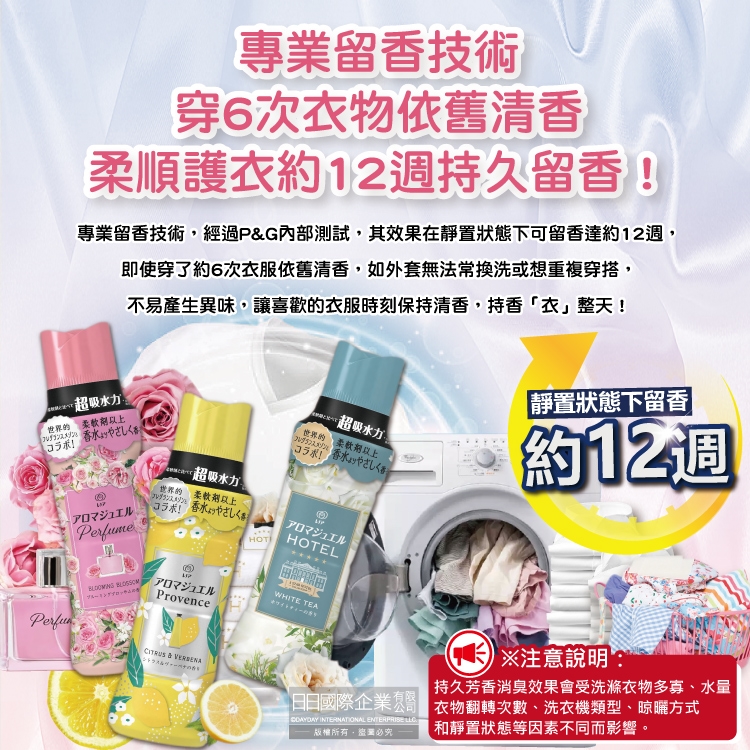 (11)持久芳香消臭效果會受洗滌衣物多寡、水量、衣物翻轉次數、洗衣機類型、晾曬方式和靜置狀態等因素不同而影響。