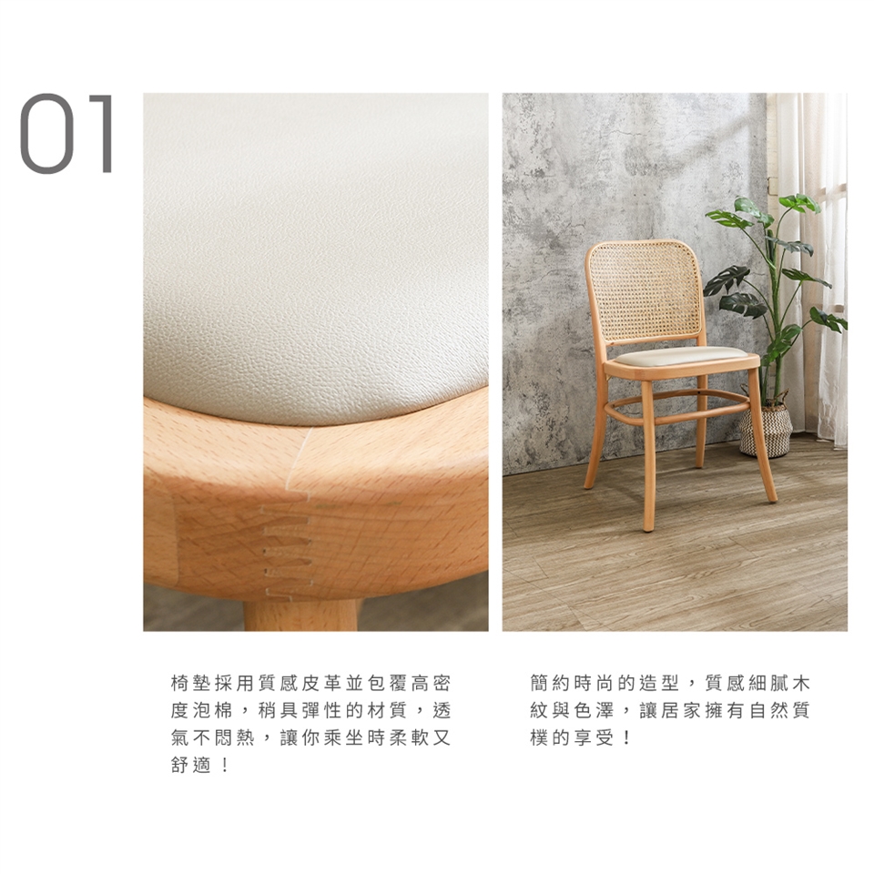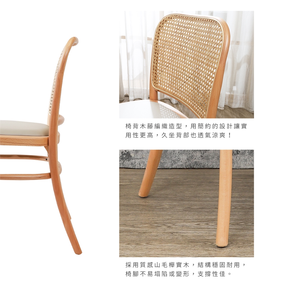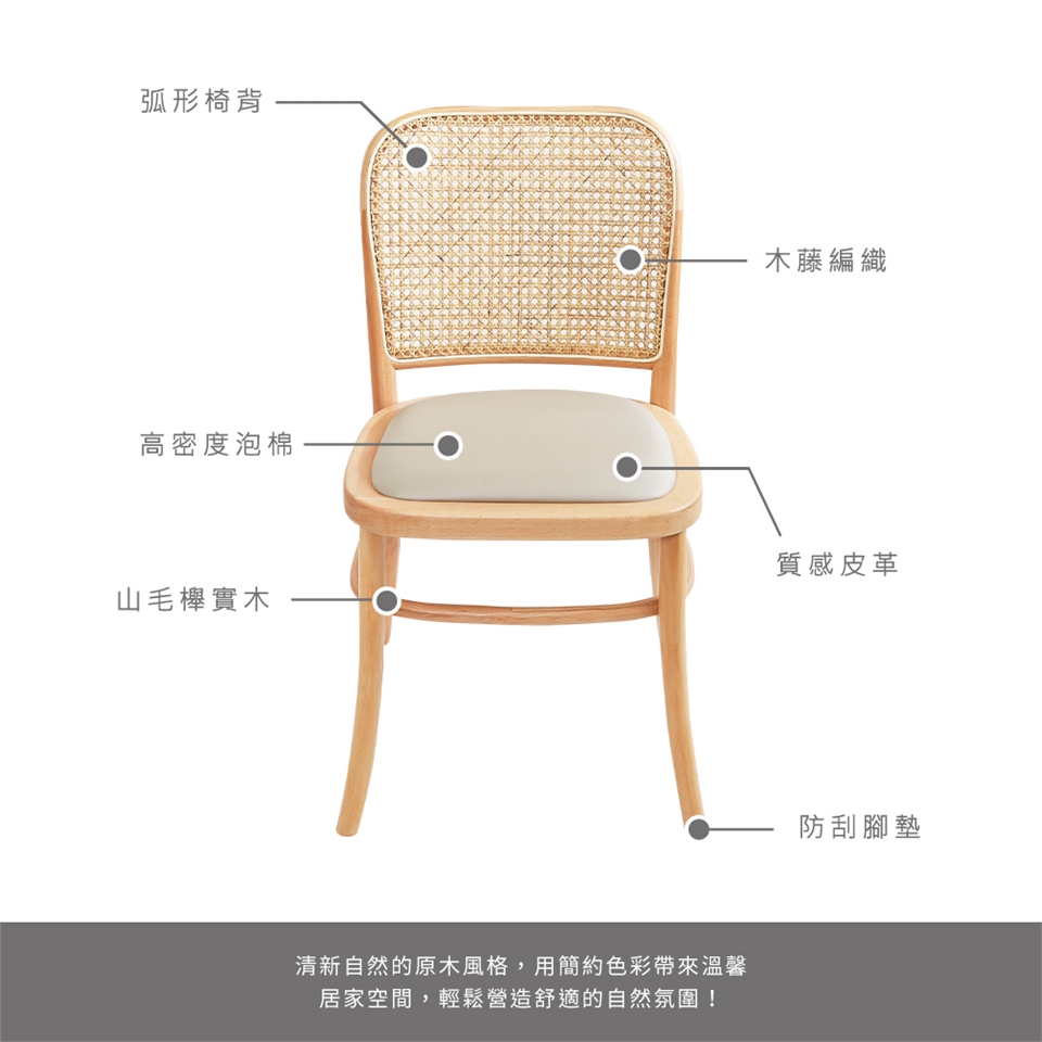 弧形椅背及透氣藤編造型,讓您倚靠時舒適度大大提升!