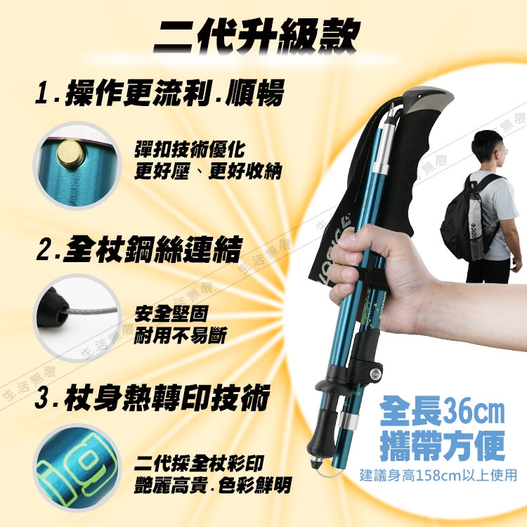 2.手杖除了做健走、徒步及登山用之外,請勿作為其他用途。