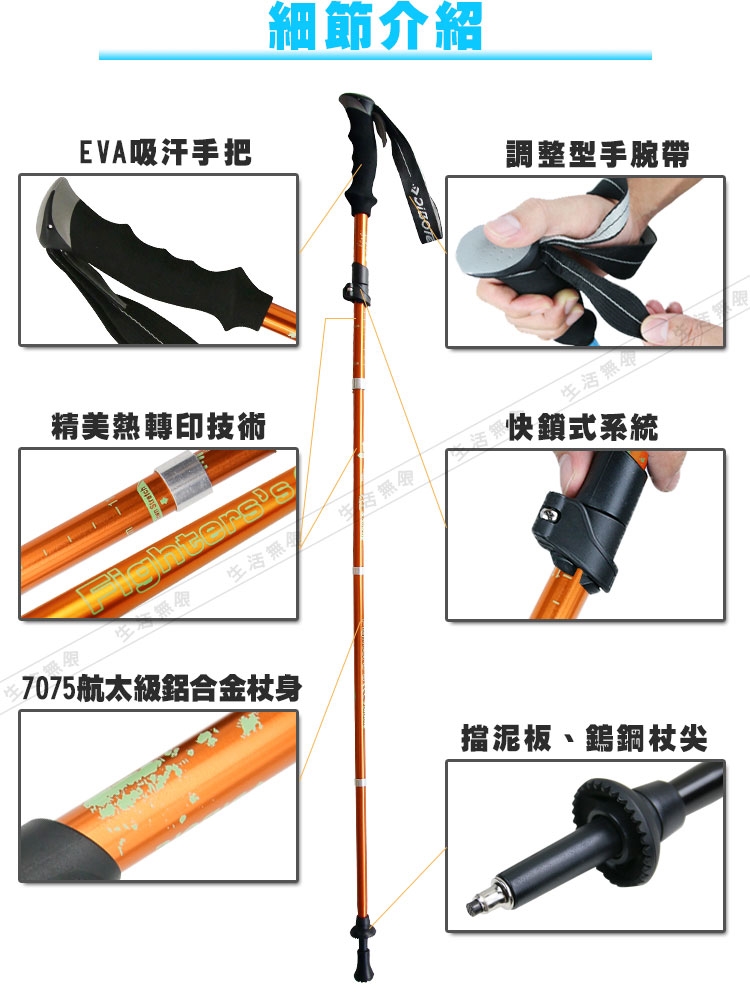 1.此杖除作為登山、健走、徒步旅行用途之外,請勿做為其他用途。