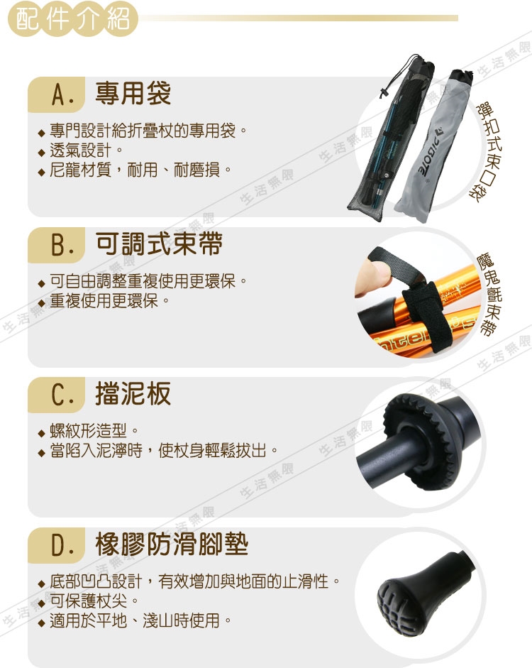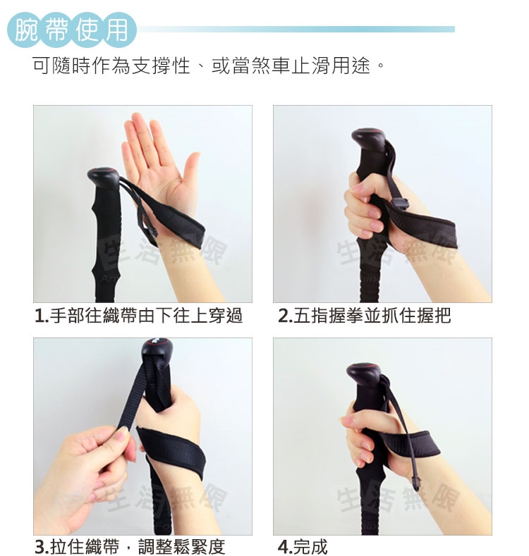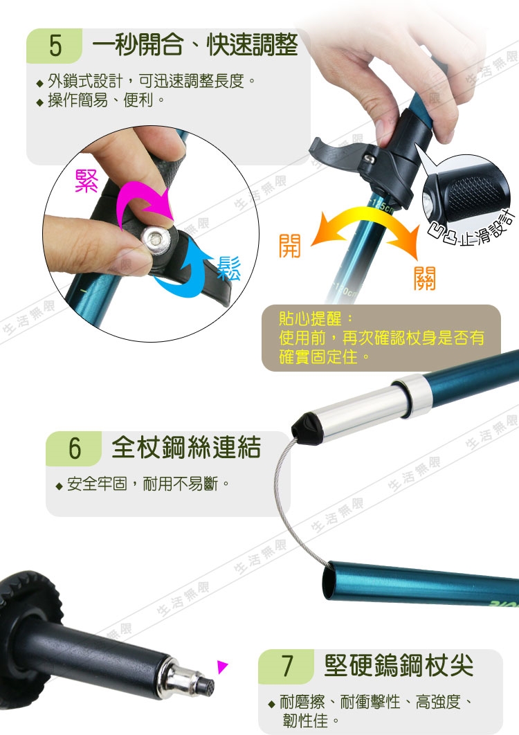 2.手杖除了做健走、徒步及登山用之外,請勿作為其他用途。
