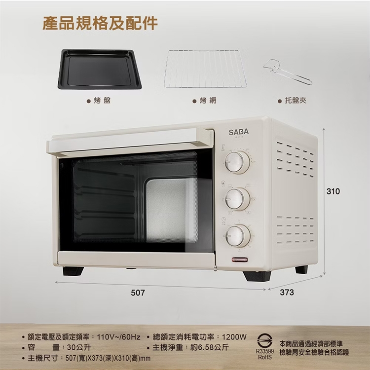 【德國 SABA】30公升旋風電烤箱(SA-HT11)