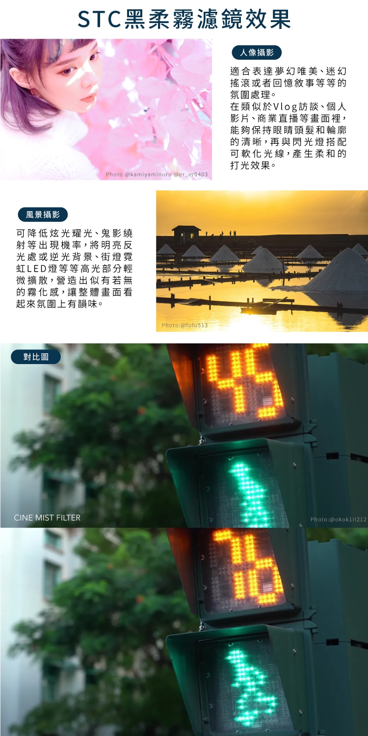 ●1/4霧化能輕微暈開高光處並柔化暗部,減弱數位影像容易產生的過度銳利感,進而使畫面產生清晰但舒適電影敘事效果。