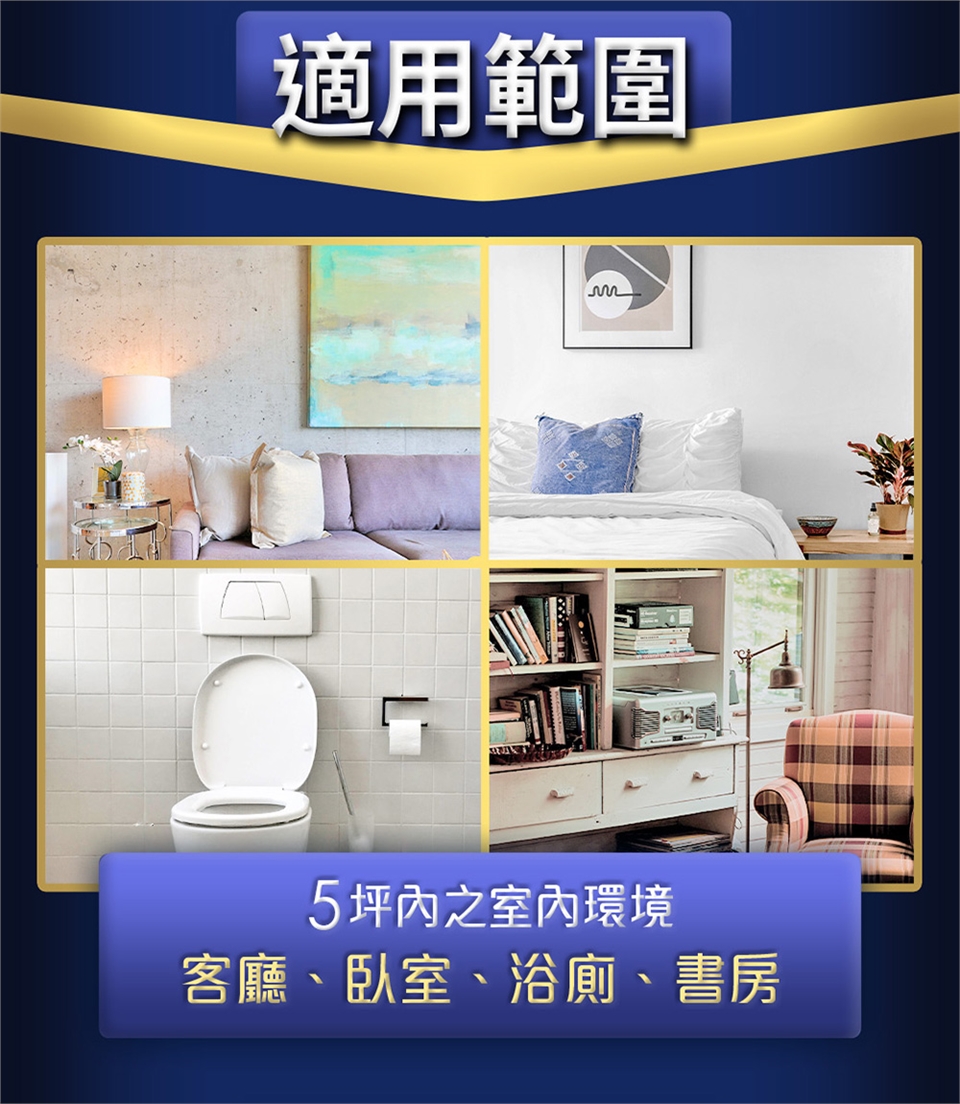 適用範圍:5坪內之室內環境:客廳、臥室、書房、浴廁