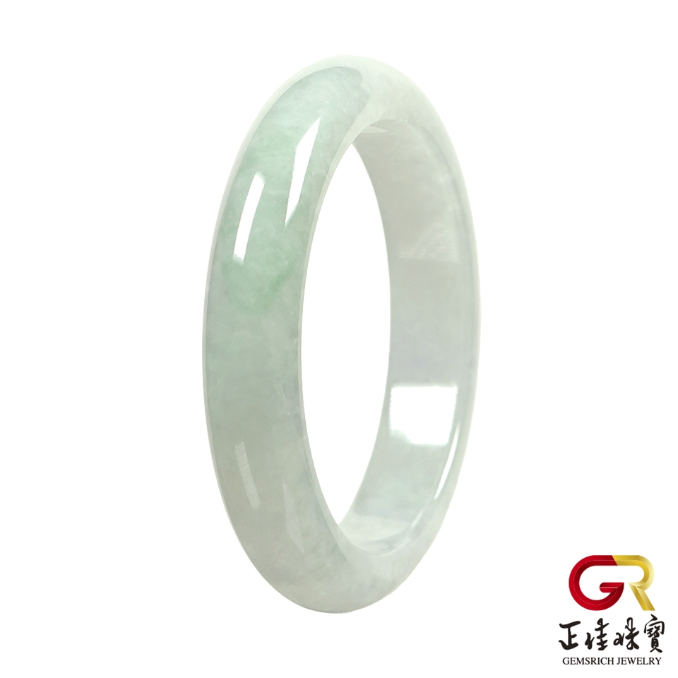 翡翠 冰綠春帶彩 微紫飄綠 內徑55.1mm 天然緬甸A貨翡翠手鐲