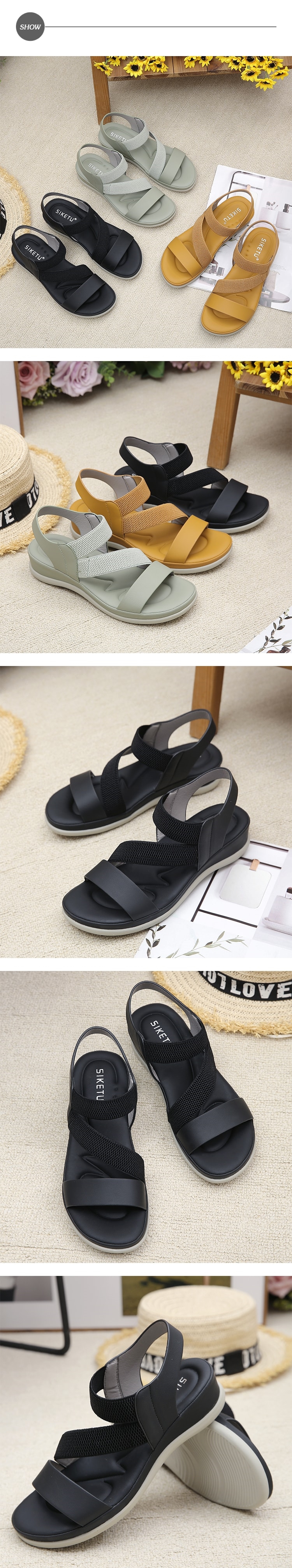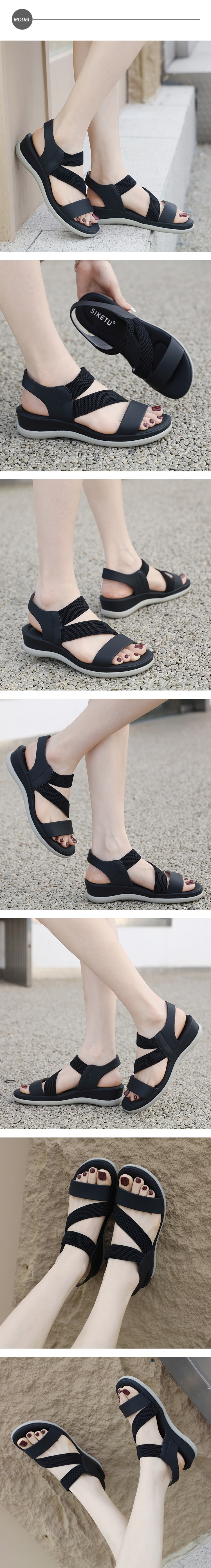 【DROM】純色彈力織帶坡跟厚底涼鞋/極簡純色百搭彈力織帶Z字設計坡跟厚底涼鞋 女鞋 黑