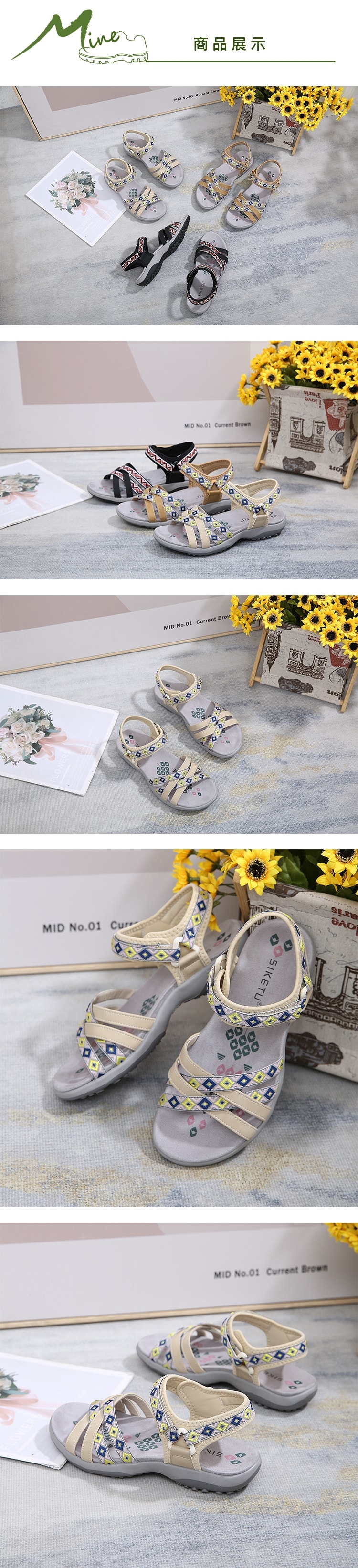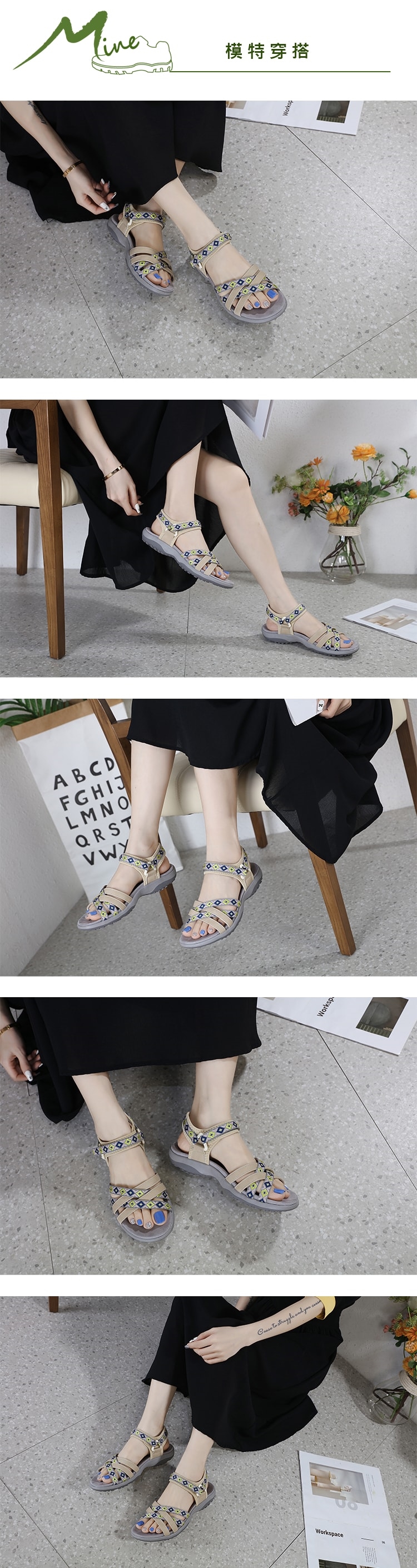 【MINE】繽紛交叉織帶戶外運動涼鞋/民族風繽紛交叉織帶舒適戶外運動涼鞋 女鞋 杏
