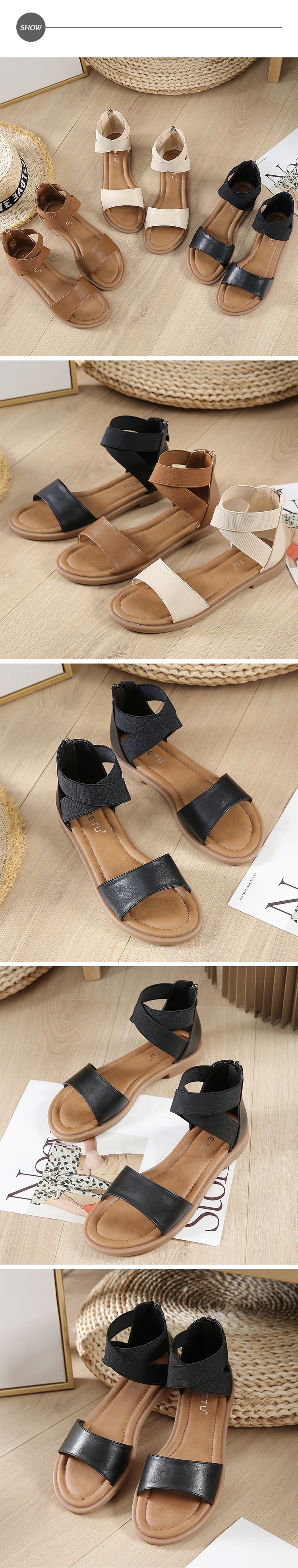 【MIXTY】一字帶繞踝低跟涼鞋/歐美時尚百搭極簡一字帶繞踝低跟涼鞋 女鞋 黑