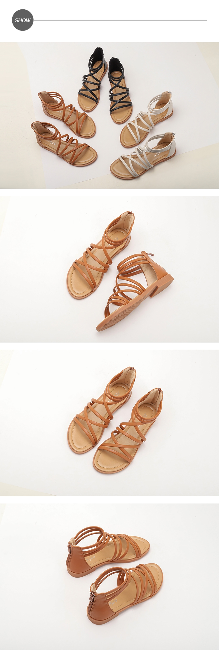 【MIXTY】交叉縷空低跟羅馬涼鞋/細緻交叉縷空線繩設計低跟羅馬涼鞋 女鞋 棕