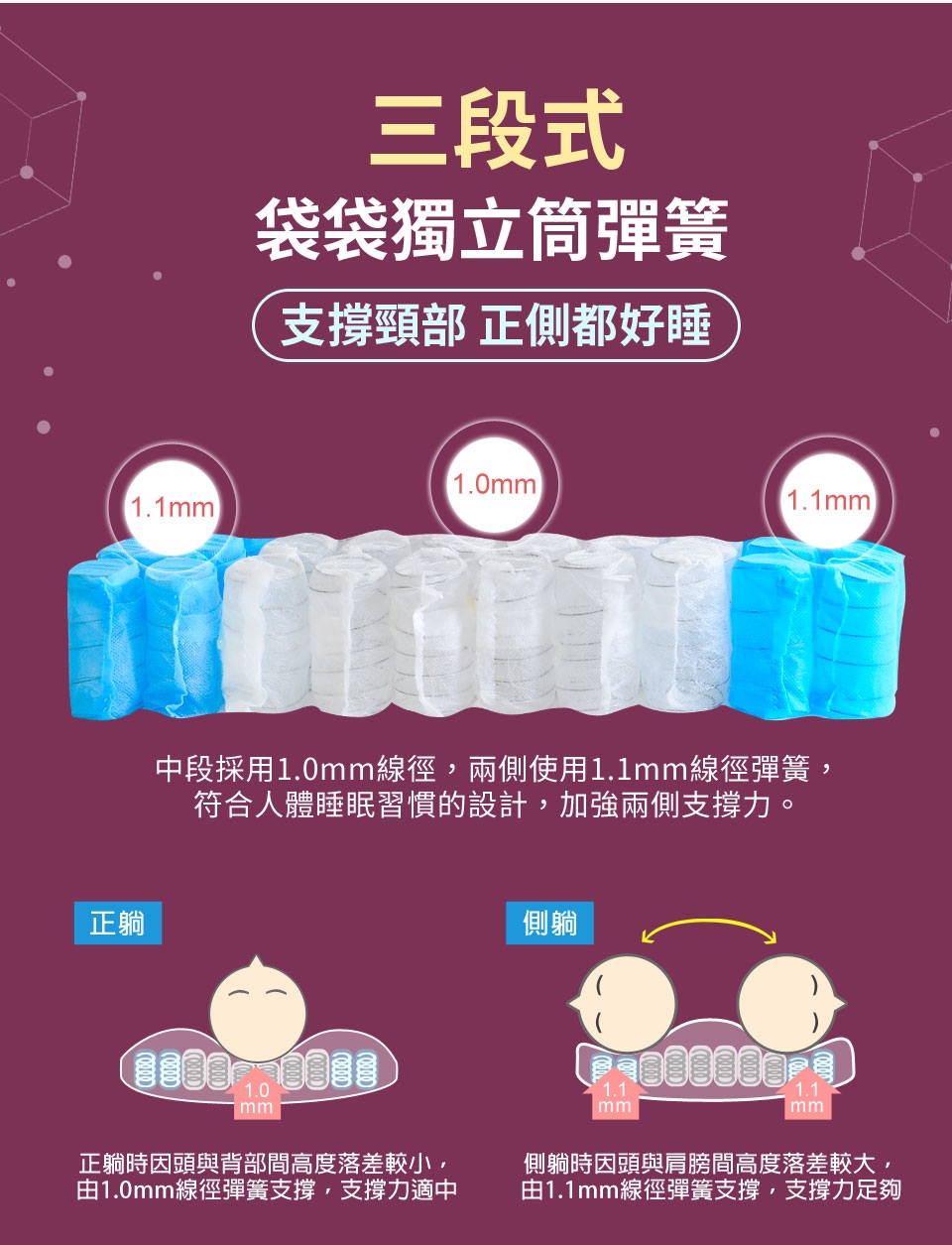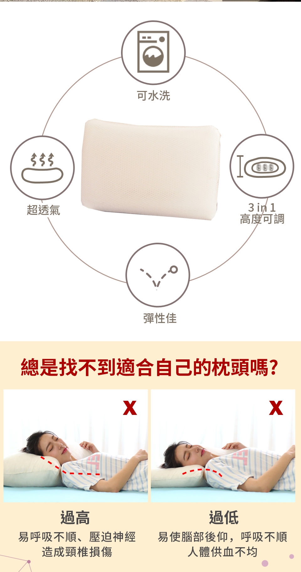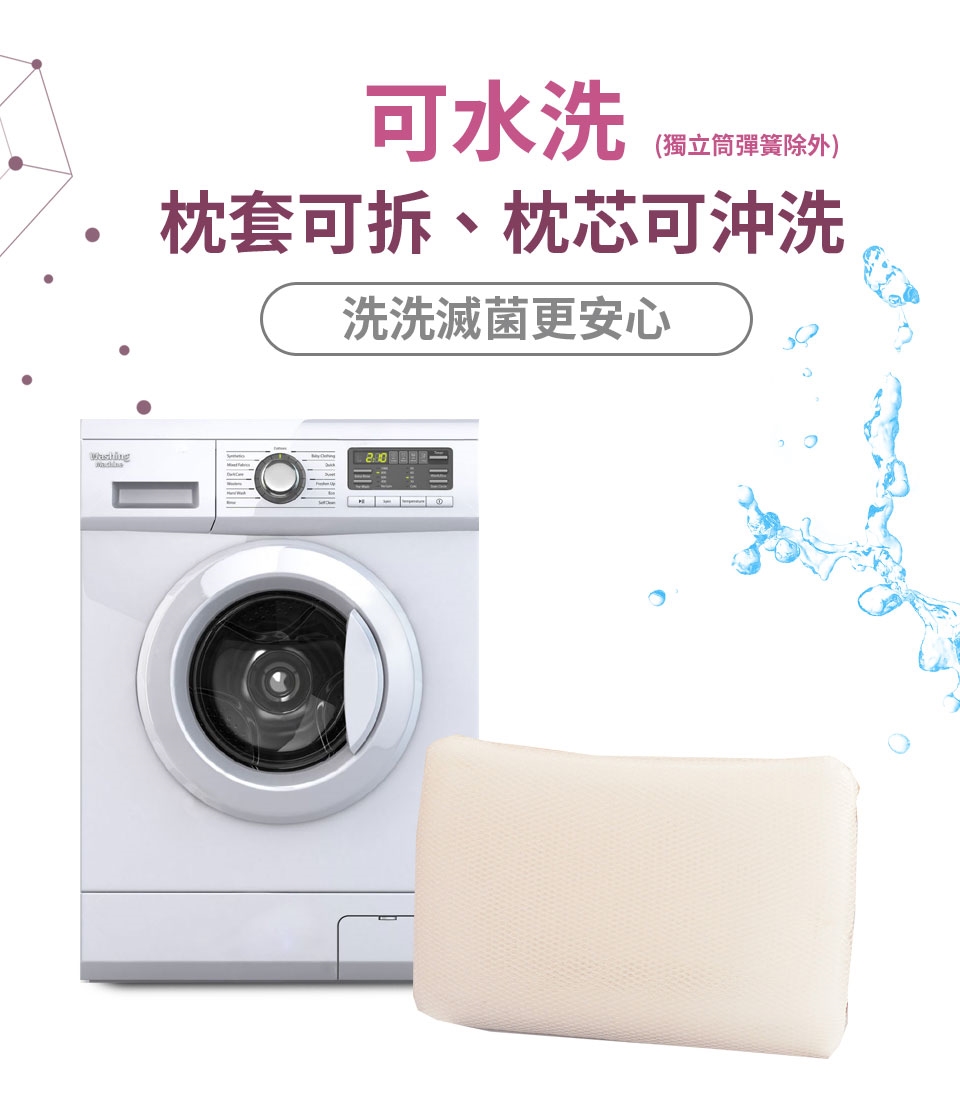 枕芯:低溫水洗、不可漂白、懸掛晾乾、不可熨燙、可乾洗(獨立筒彈簧不可洗)