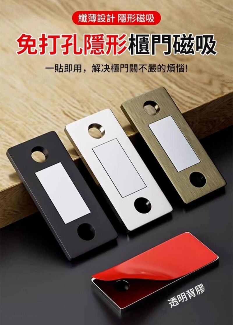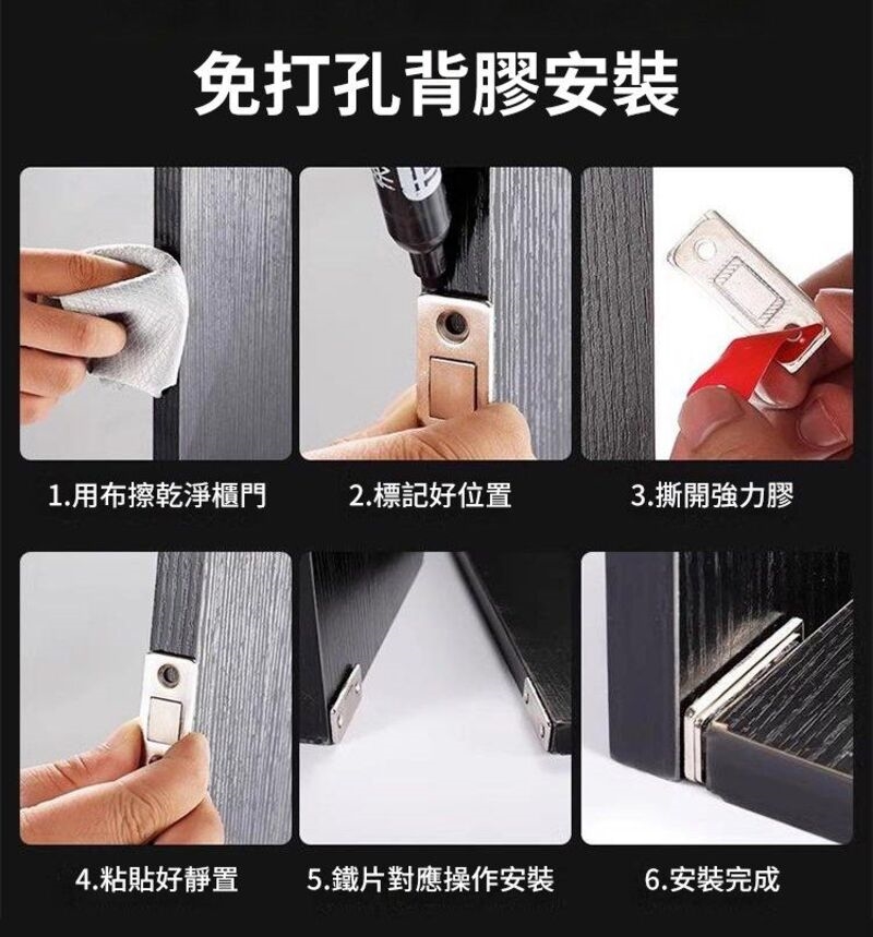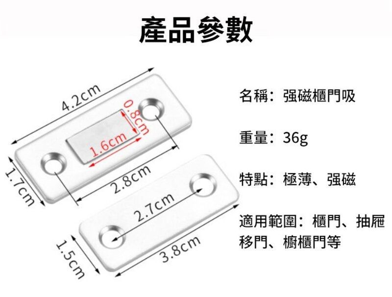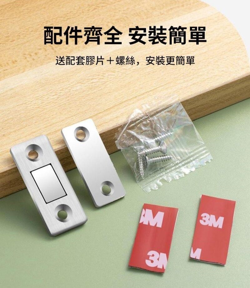 包裝內容:門吸一組,鐵片x1.螺絲x4.雙面貼x2